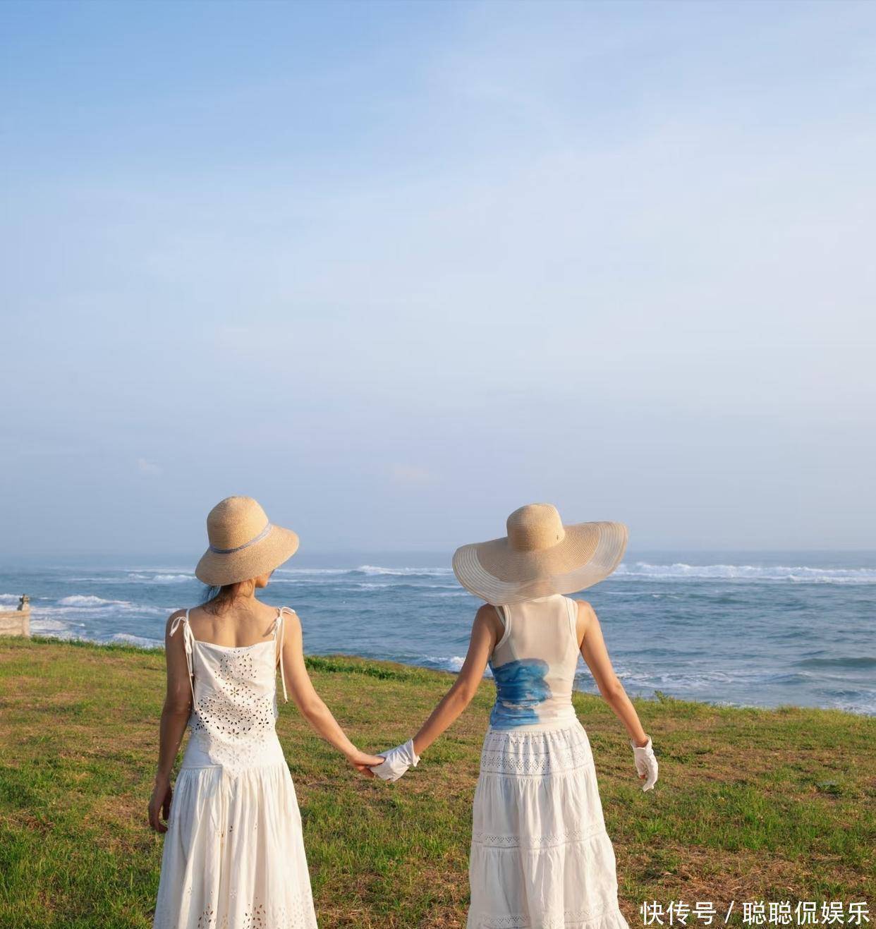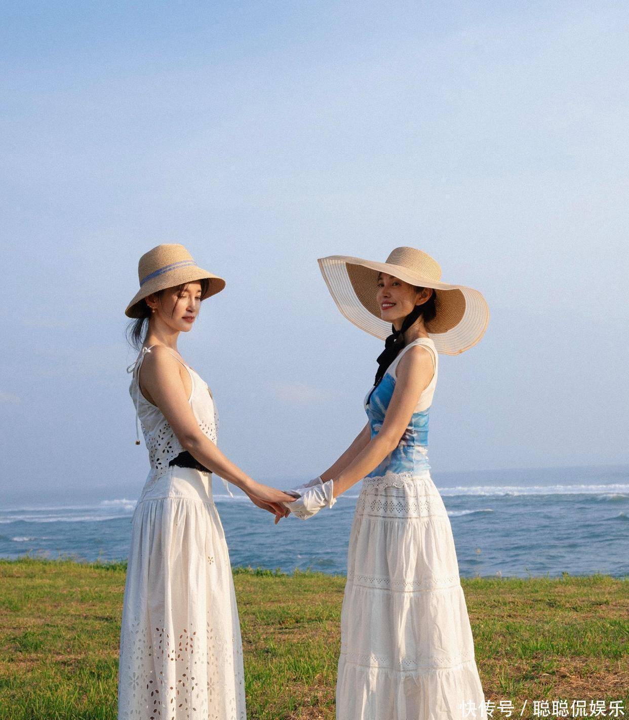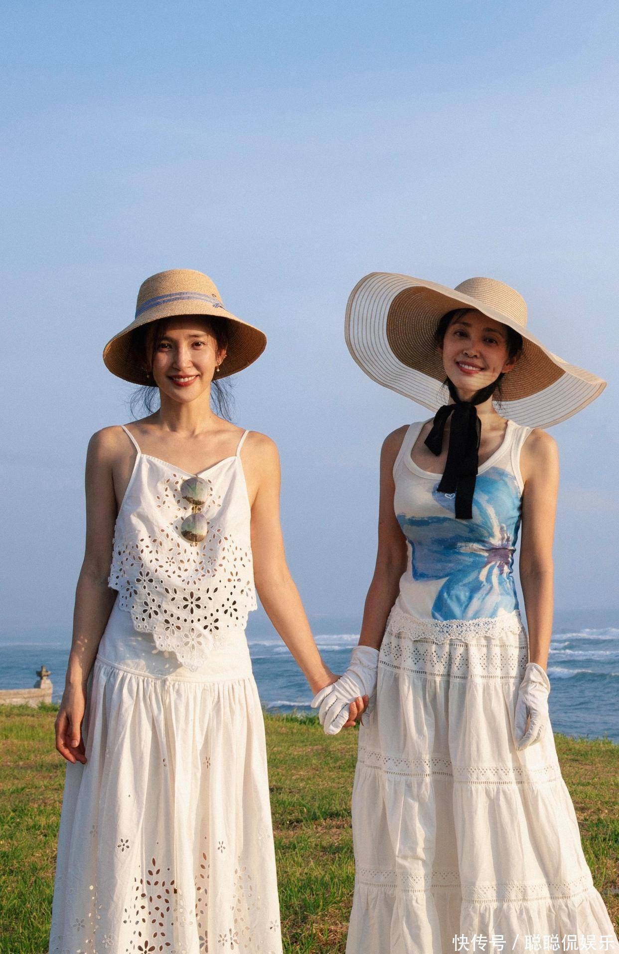 单看李雪的脸,五官精致,大眼睛高鼻梁,笑起来还有李冰冰都没有的梨涡,温柔又有亲和力。两人手牵手站在海边,像一对双生花,画面特别养眼。